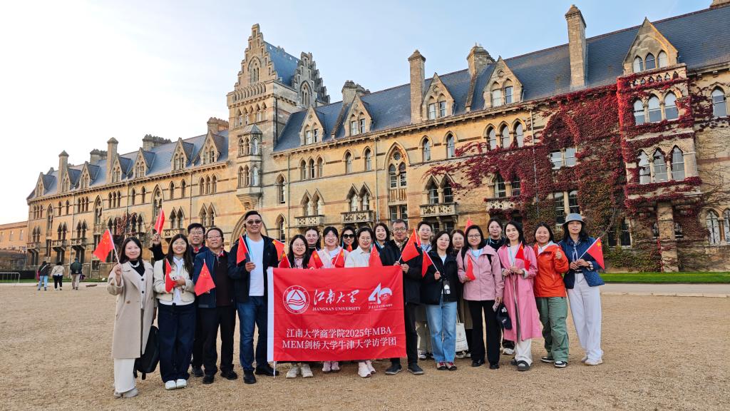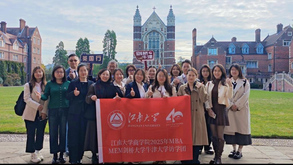 9月29日,江南大学商学院2025年MBA/MEM访学团远赴英国,开启了“数字化转型与人工智能”主题的学习之旅。牛津、剑桥、伦敦,七日三城,从剑桥的剑河波光到牛津的古巷斜阳,再到伦敦的璀璨地标,匆匆行走的时光里,在“理论与实践”“古典与现代”的碰撞中,同学们尽享了一场难忘的成长盛宴,完成了一次密集的“思维扩容”。