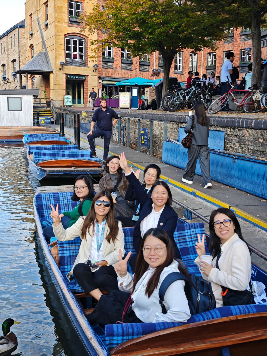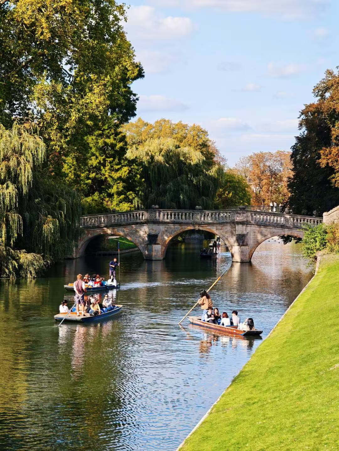 褪去了课堂严肃的剑桥,化身诗意的画境。漫步国王学院,哥特式的教堂尖顶直插云霄,阳光透过彩绘玻璃洒在地面,仿佛将千年时光都揉进了光影里。三一学院门口小小的苹果树,果子掉落的一瞬间,改写了人类对宇宙运行的根本认知。站在树前的我们就像握住历史的任意门,微淼平凡的人生在触及人类磅礴历史中的一瞬时,也会有一刻的震颤。最令人沉醉的当属康河泛舟,帅气的撑篙人轻轻一点,小船便在碧波上缓缓前行。两岸的学院建筑静静矗立,柳枝垂落水面,微风拂过脸颊,让人忍不住想起徐志摩“撑一支长篙,向青草更青处漫溯”的诗句,此刻才真正懂了“再别康桥”的温柔与浪漫。