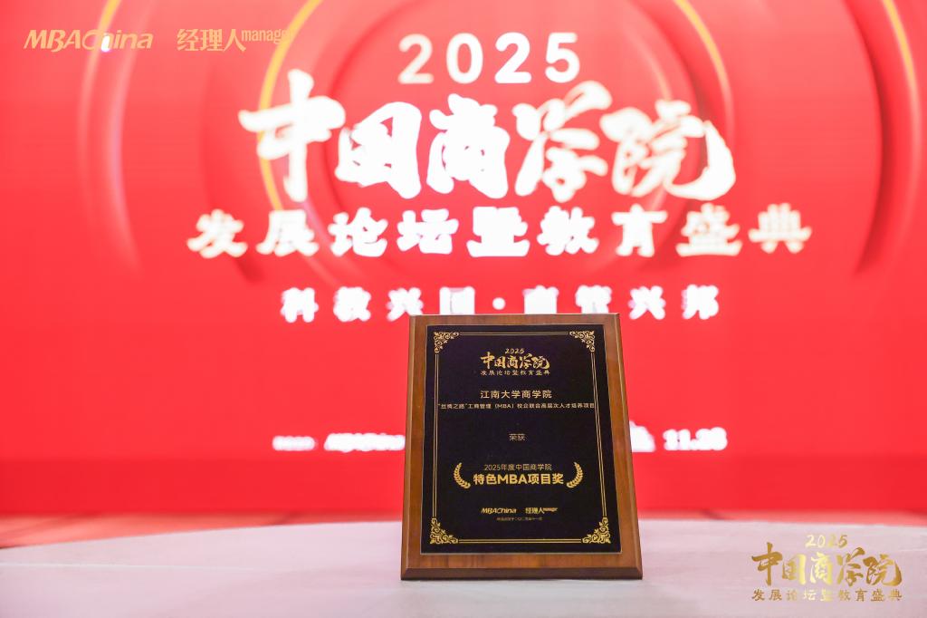 项目荣誉是对江南大学MBA教育在人才培养模式创新、产教融合生态建设等方面管理实践的高度认可,彰显了我校MBA教育在数字经济时代商科教育领域的地位和特色。江南大学商学院立足新发展格局,依托长三角产业协同发展的区位优势,紧扣区域产业升级诉求与全球商业创新浪潮,持续精进教育教学核心质量,深化专业学位产教融合与跨界创新重构,锤炼师资队伍学术攻坚能力与产业实践赋能效能,创新人才培养范式,搭建国际国内合作平台,为中国商学教育的高质量发展持续注入江南特色的坚实动能与创新力量。