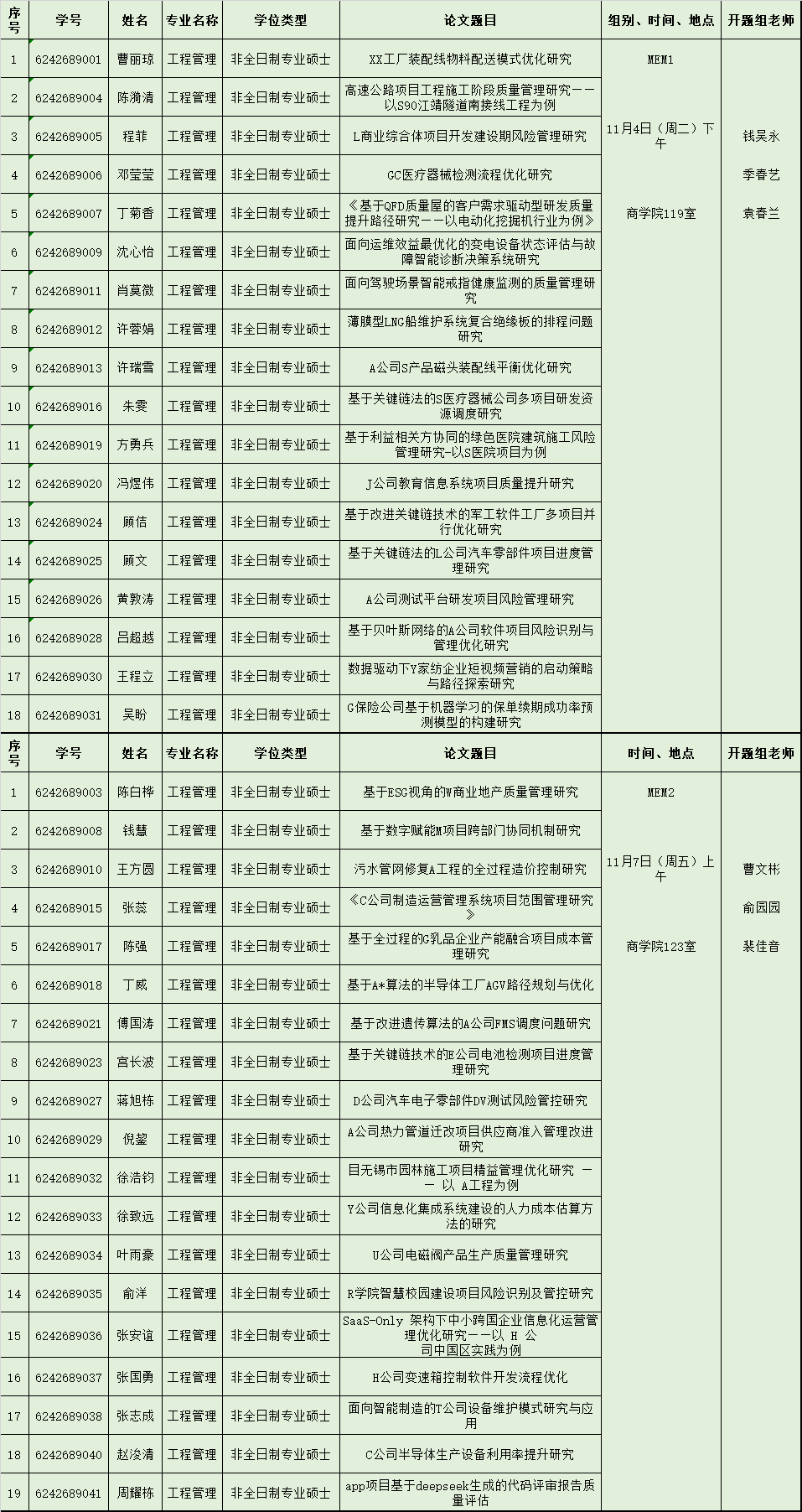 本学期论文开题报告会将于2025年11月3日(周一)至11月7日(周五)期间在商学院进行。