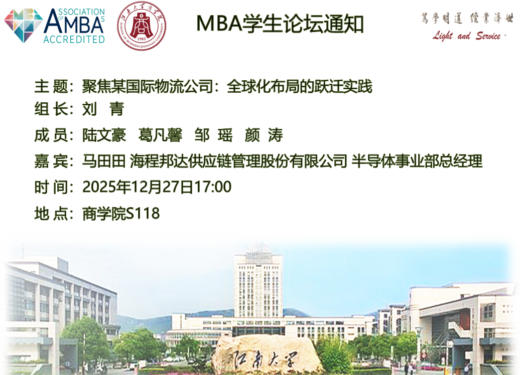 论坛以MBA“供应链管理”“国际商务”“企业战略”等专业知识为支撑,采用“问题拆解—理论支撑—案例借鉴—方案构建”的逻辑,深度探讨资源整合协同、合规体系搭建、服务模式创新、中层领导力提升、绿色物流实践等关键议题。旨在探讨海程邦达可落地、可量化、可复制的全球化跃迁路径,同时为跨境物流行业同类企业提供参考,搭建理论与实战深度融合的交流平台,助力提升解决企业实际管理问题的能力。